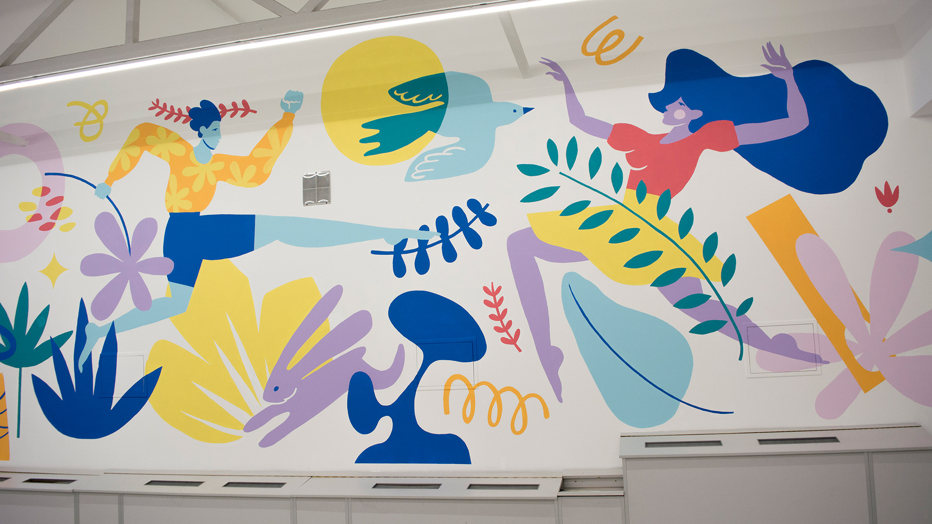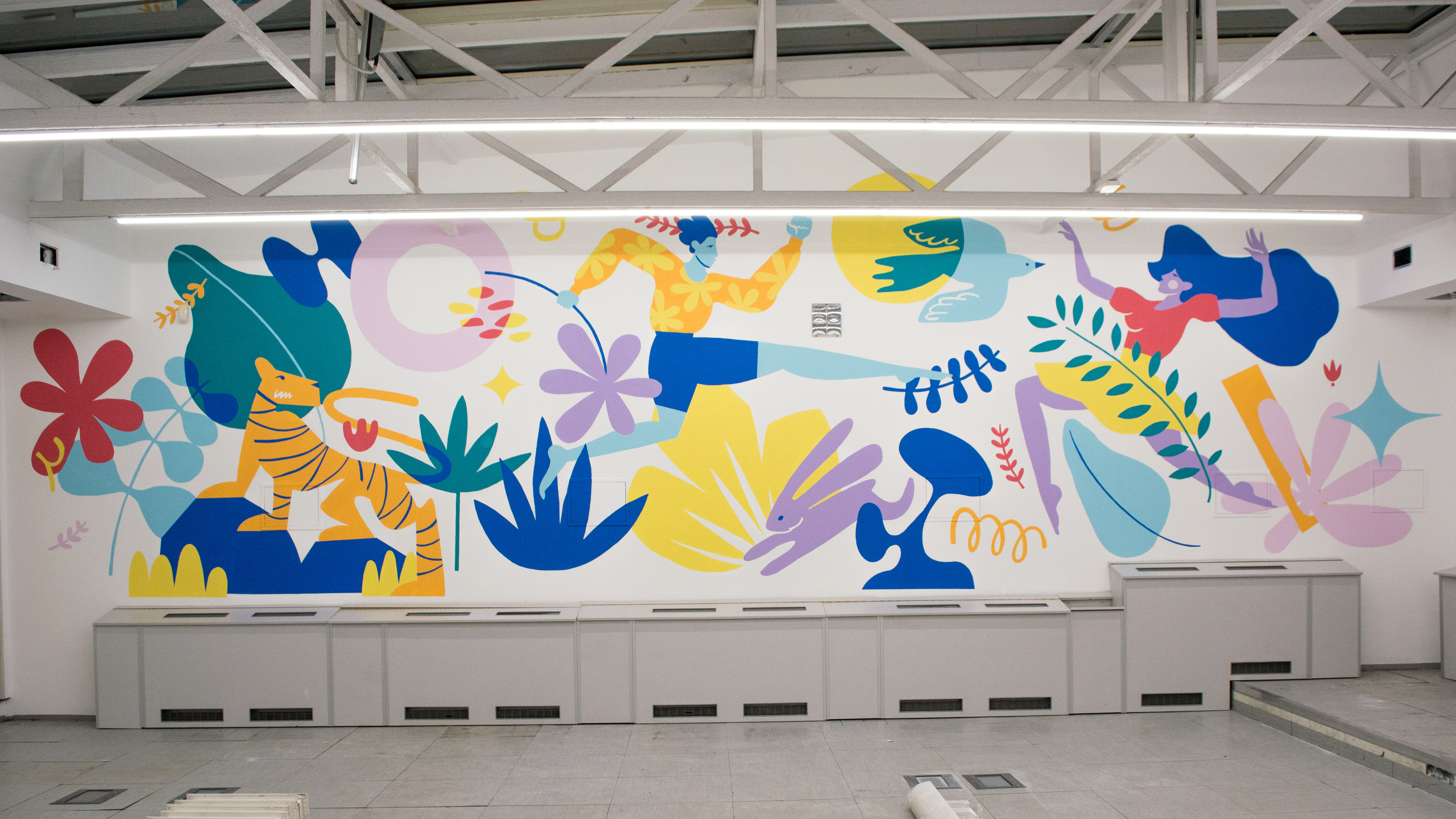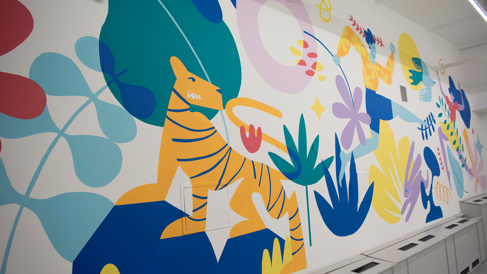 I was delighted to design this mural for our office wall. My colleagues and I painted it in a few days and enjoyed looking at our joint creation every day.