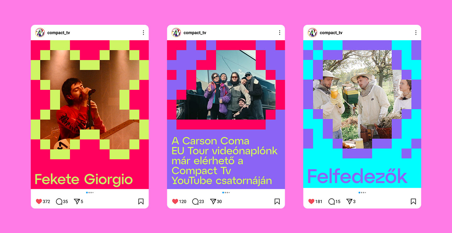 Compact tv is a content creator platform for the GenZ. Previously, they did not have a fixed visual identity, only a logo. I put together a fresh and youthful social media template package to match the logo, which they can easily adapt to their diverse content.