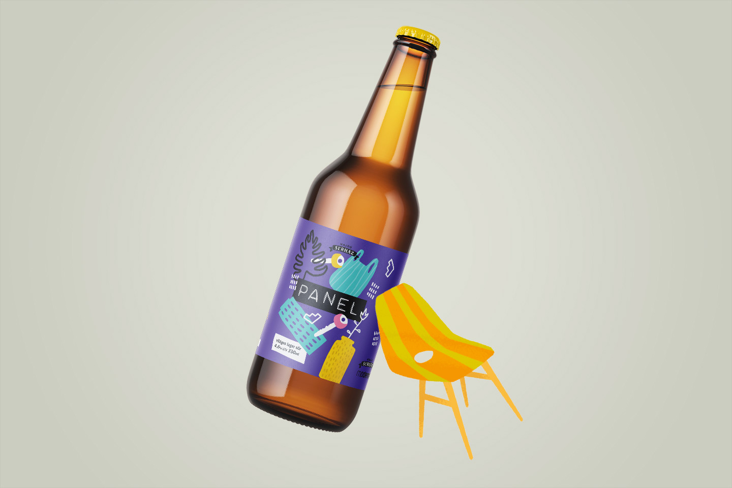 PANEL beer is an easy-to-drink new lager made from Viennese malt, German Magnum and Perle hops, with an alcohol content of around 4.5%, evoking the atmosphere of retro beers from housing estates in both color and taste.